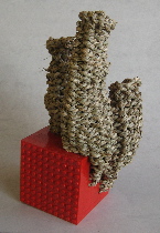 Cube No. 2, Red (2005) size: 9" tall, 5" diam. (widest) materials: Lego bricks, seagrass price: $150 Inspired loosely by diving on the great barrier reef earlier this year. Also by the tube worms found at the thermal vents on the sea floor. Looking for other growth shapes. |